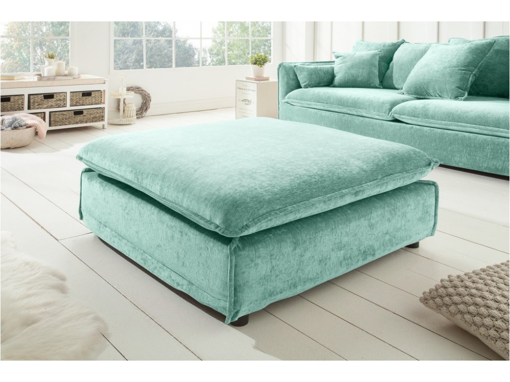 Grand POUF 100cm velours aqua style cottage