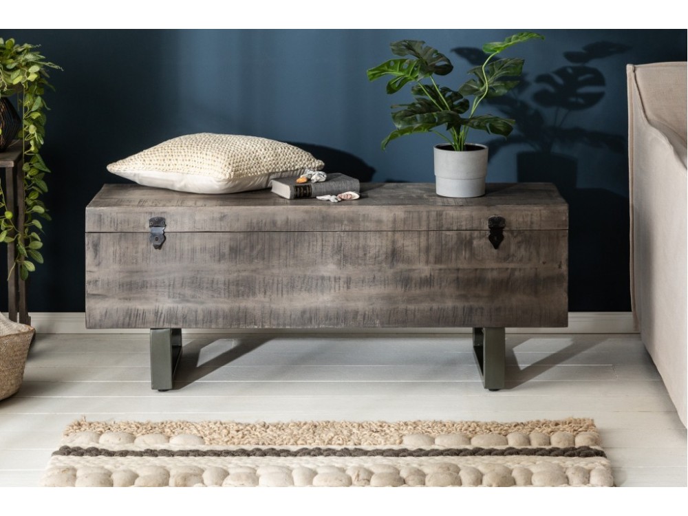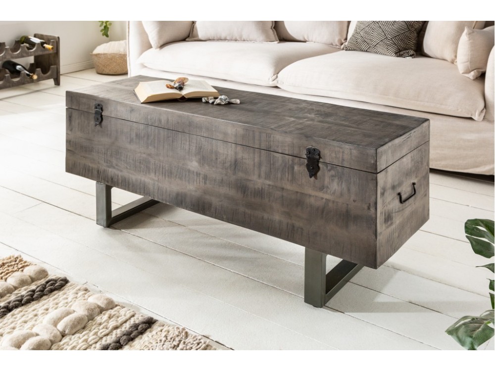 Banc de coffre industriel FACTORY LOFT 115cm bois de mangue gris Banc